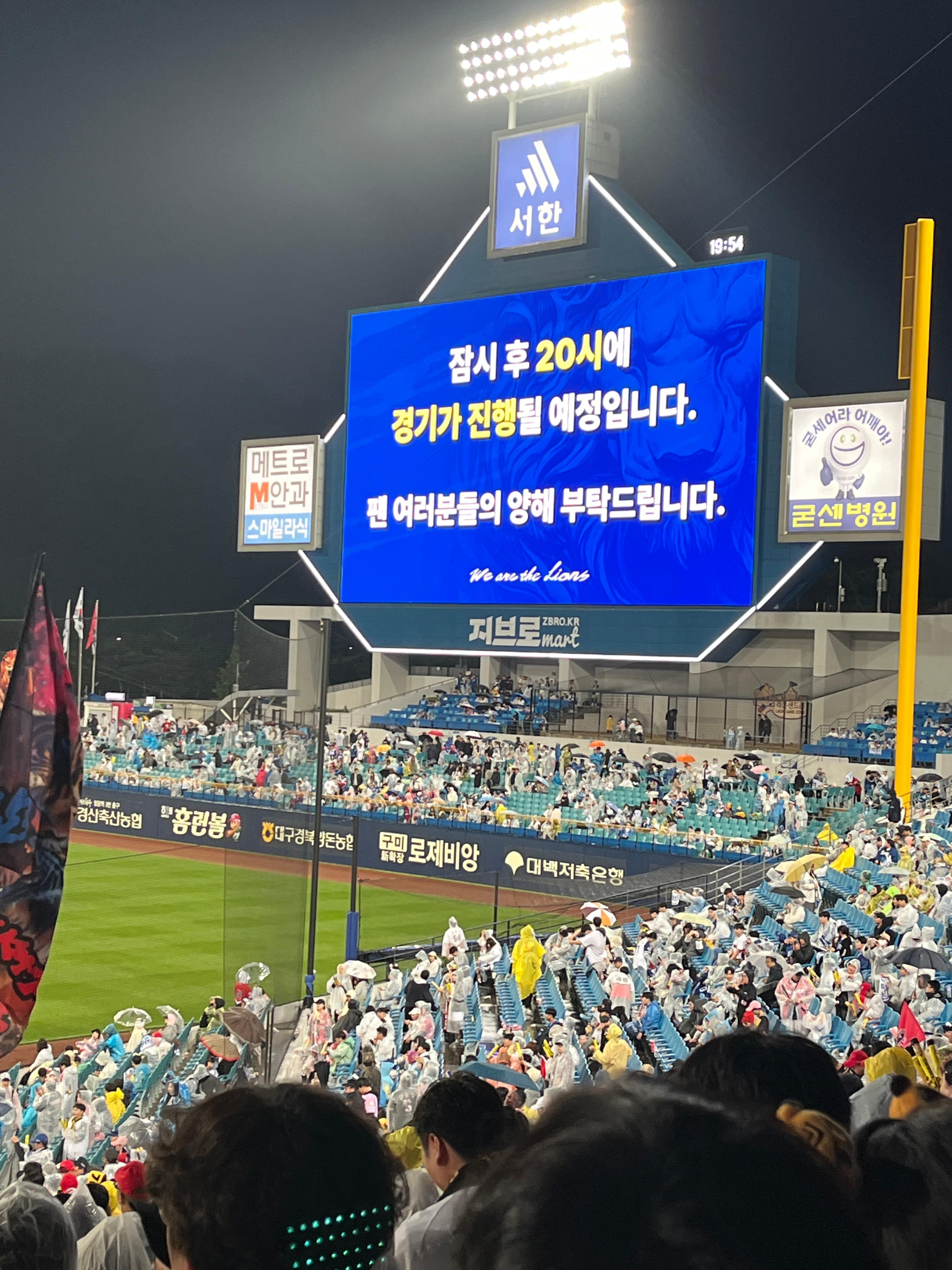 7회 들어가기전 비가 갑자기 많이 쏟아져서 중단도 됐어요.