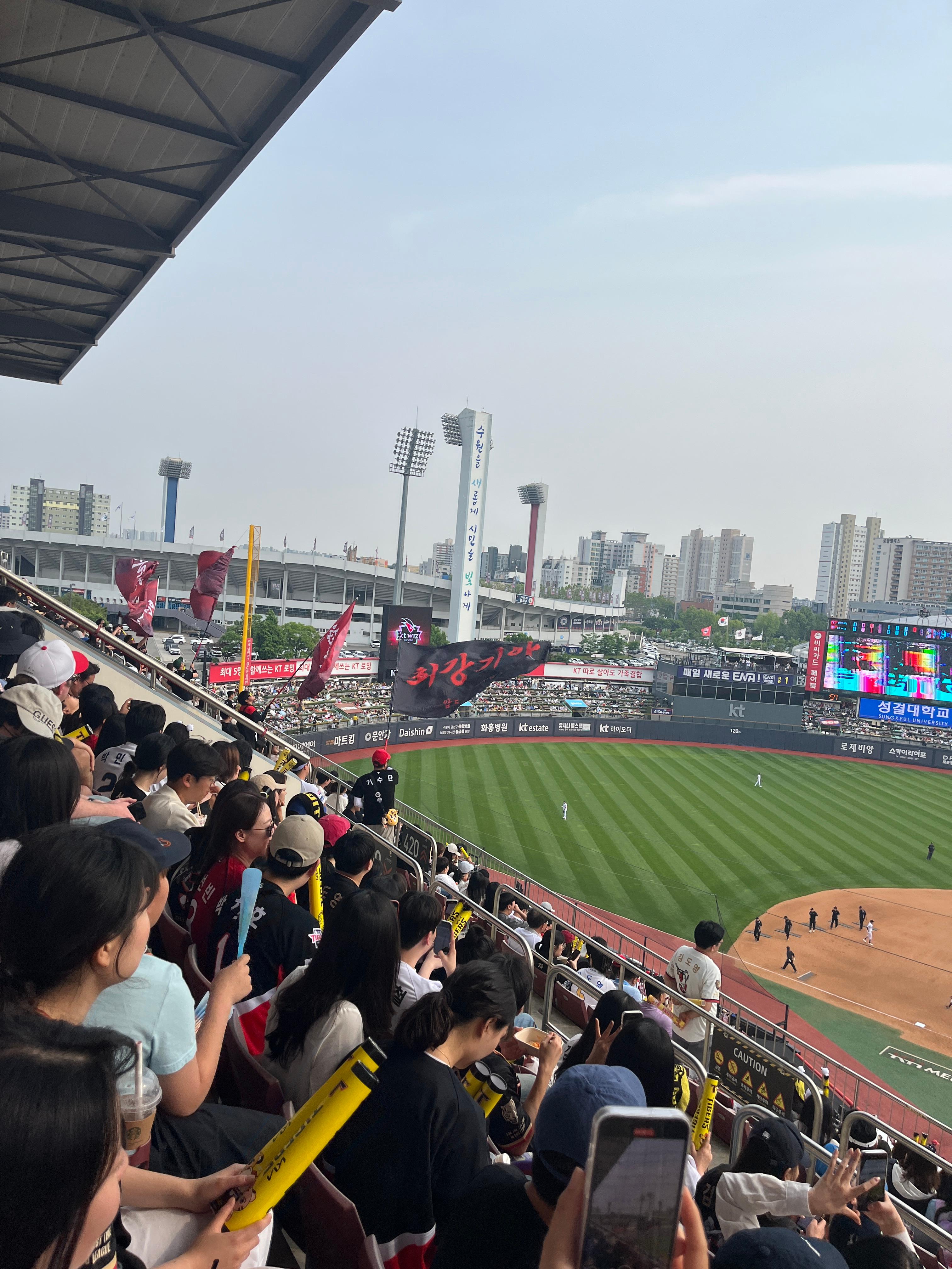 스카이존도 응원할때 같이하는 블럭도 있어서 저는 1회 라인업송까지는 일어나서 같이 불렀어요.