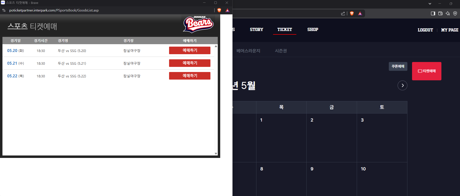 이중에 오늘은 잠실을 사용하는 구단 중 두산베어스 선예매(유료회원) 방식을 알아보려고 합니다.